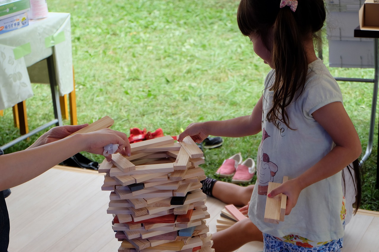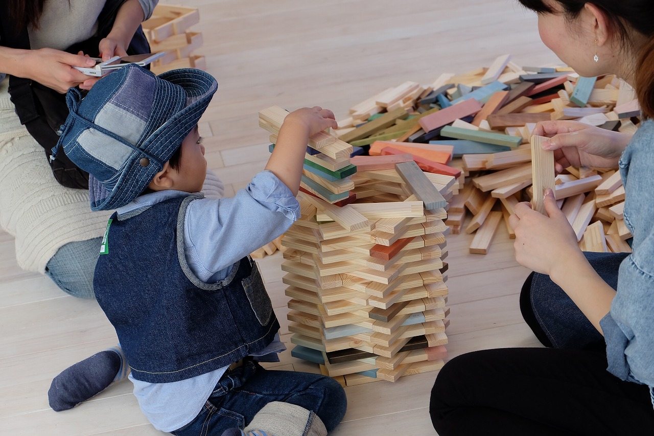 弊社工場は無垢建具やフローリングなどの製造段階で余った端材を上手く活用できないかと考えて子供用のつみきという知育玩具や無垢建材の色見本を兼ねて製作を始めました。