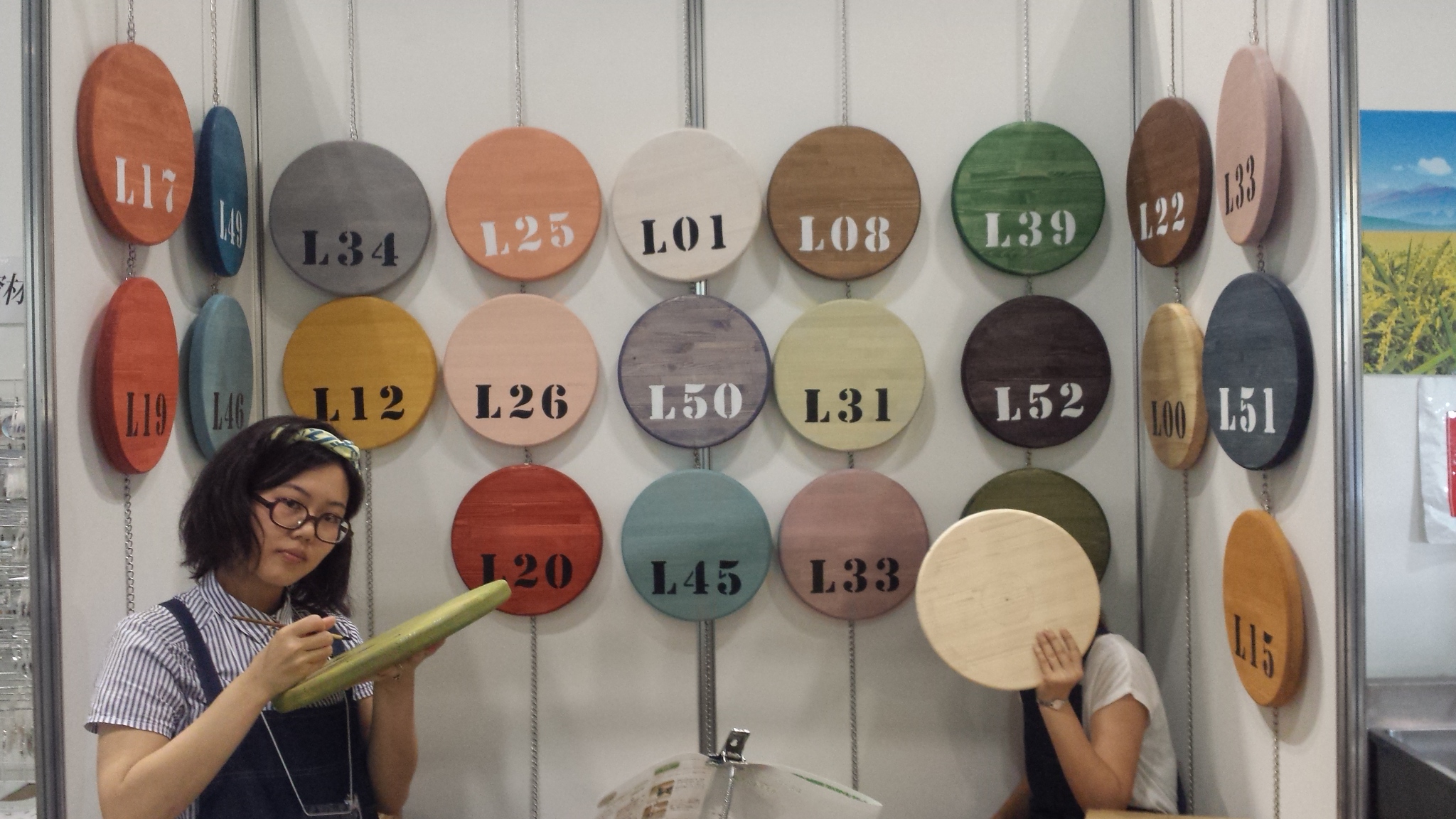 まずは展示方法として現地にてスツール(椅子)の座面を53色で塗装するところ見てもらおう!
