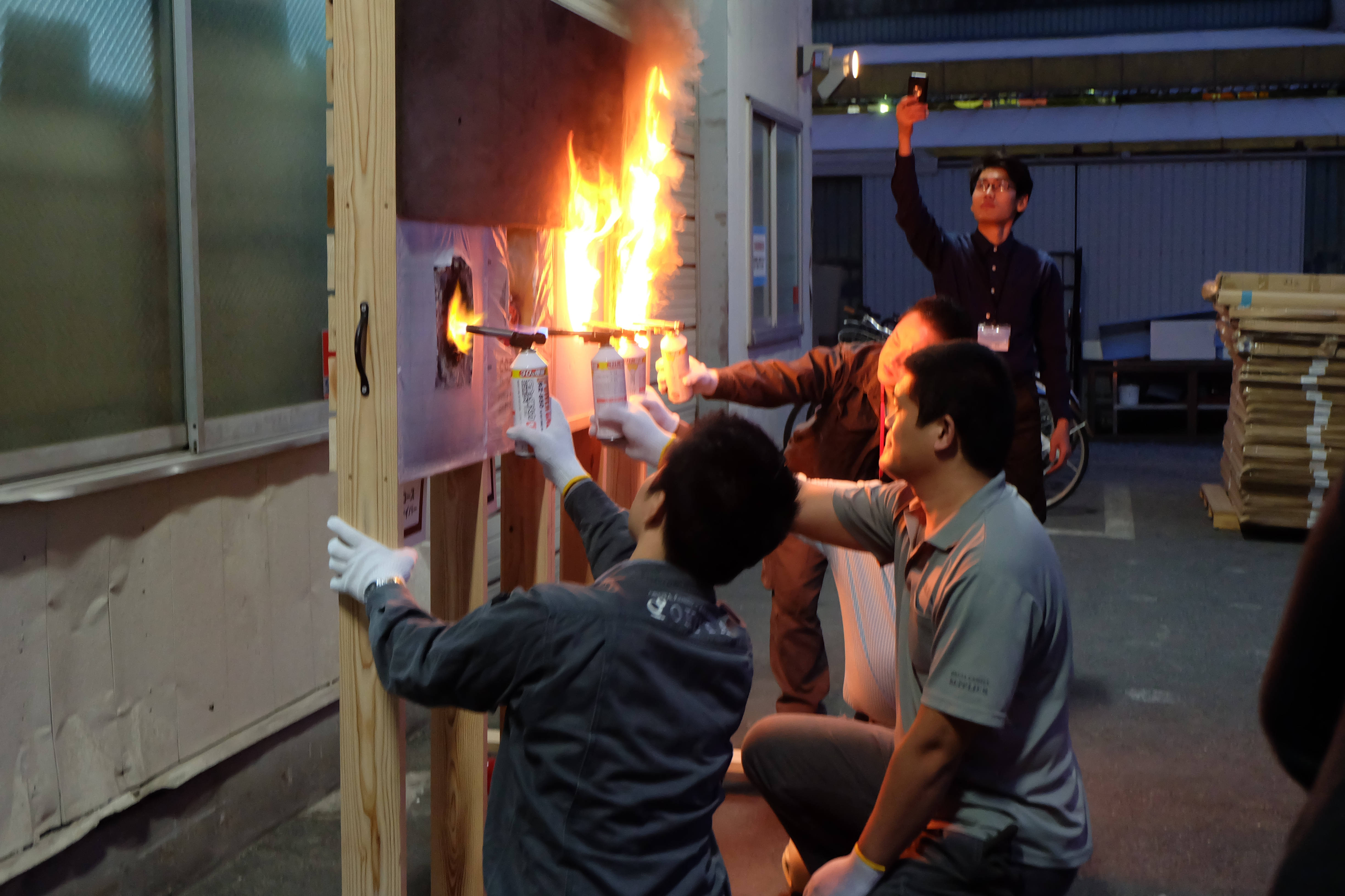 16:00~:EMセルロースファイバーの燃焼実験・各種オリジナル建材見学