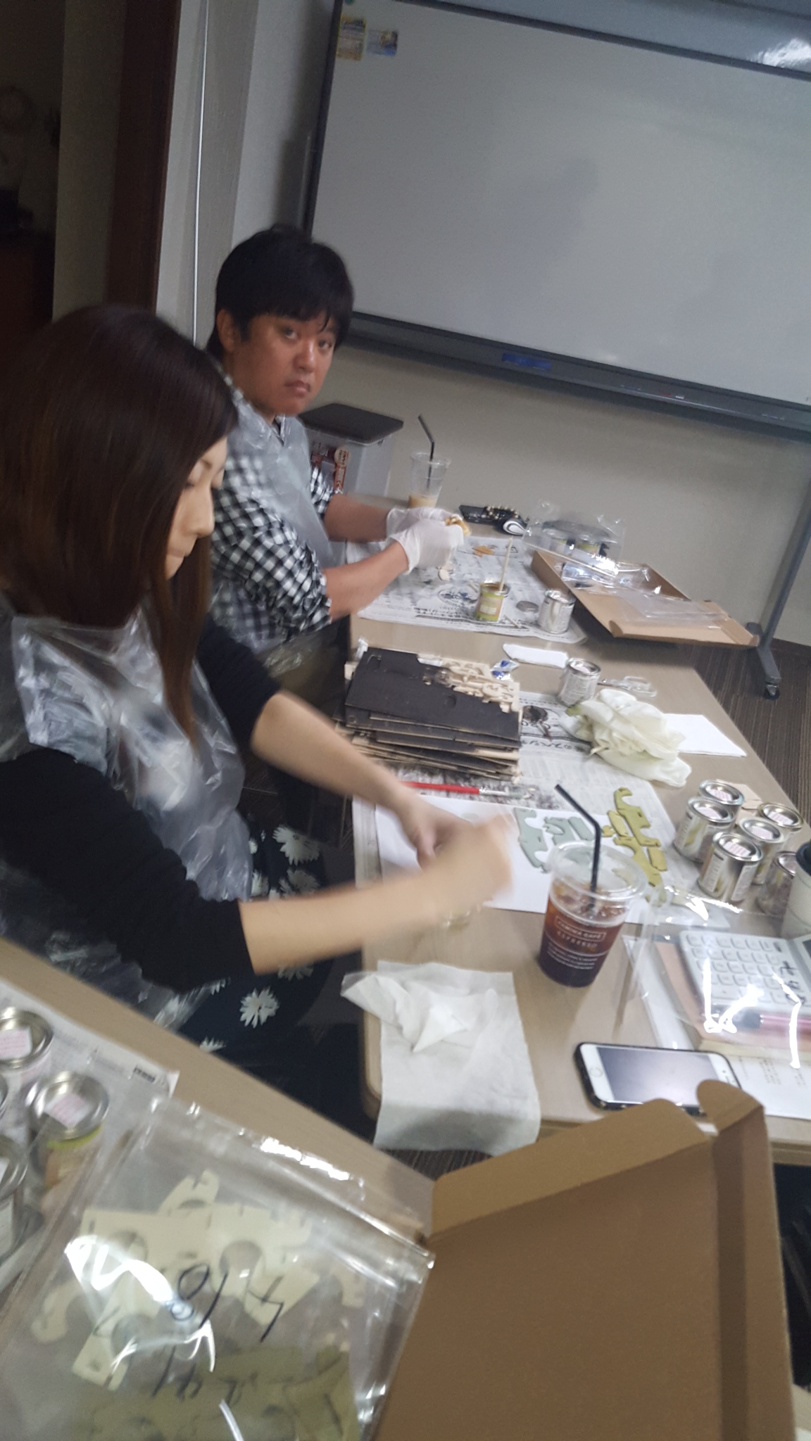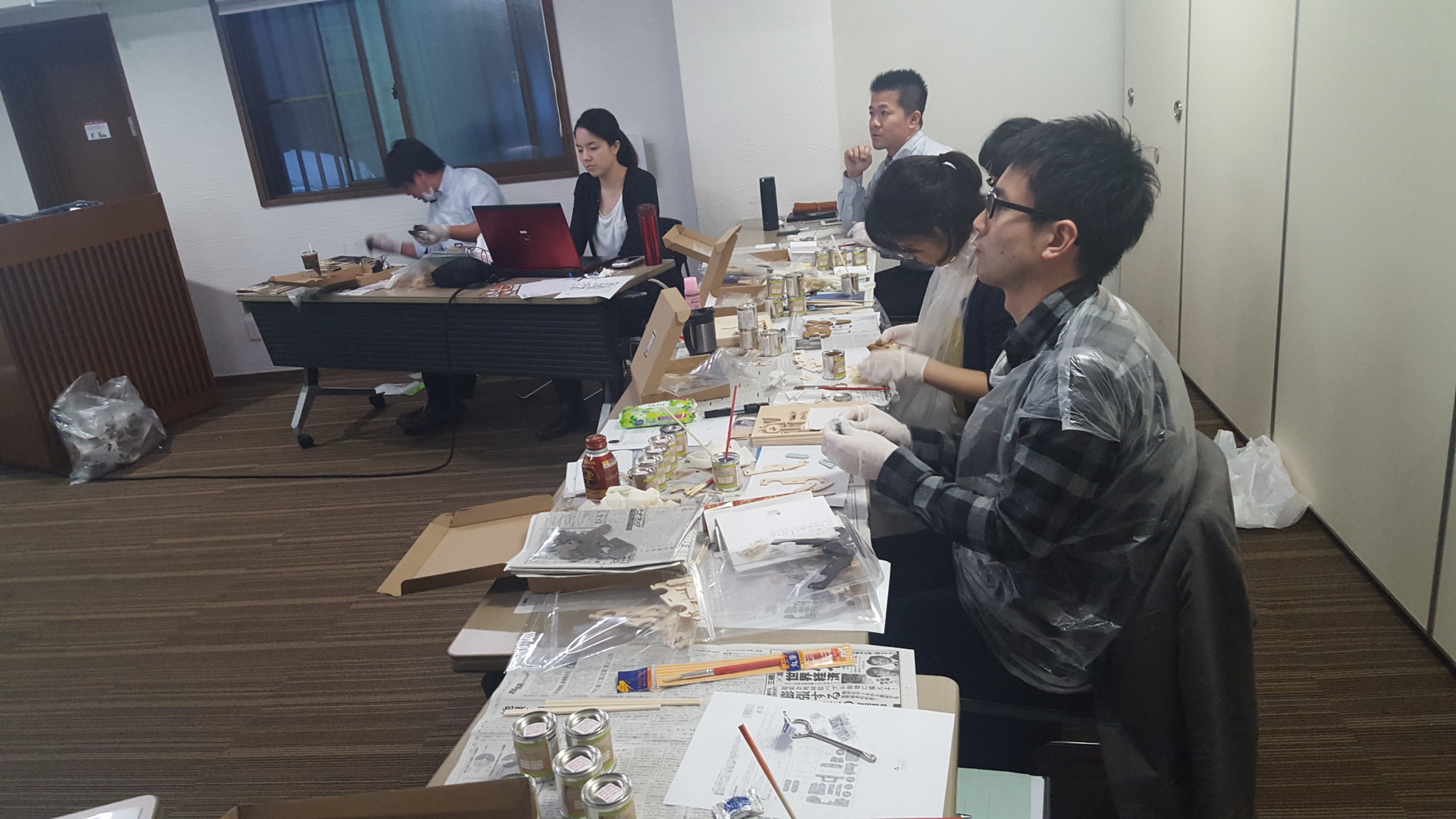 100円ショップで販売している車の模型に塗装をしながらのミーティングでした。