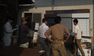 実際に、建具・室内窓・床材・珪藻土などのLOHAS materialをご覧いただきました!