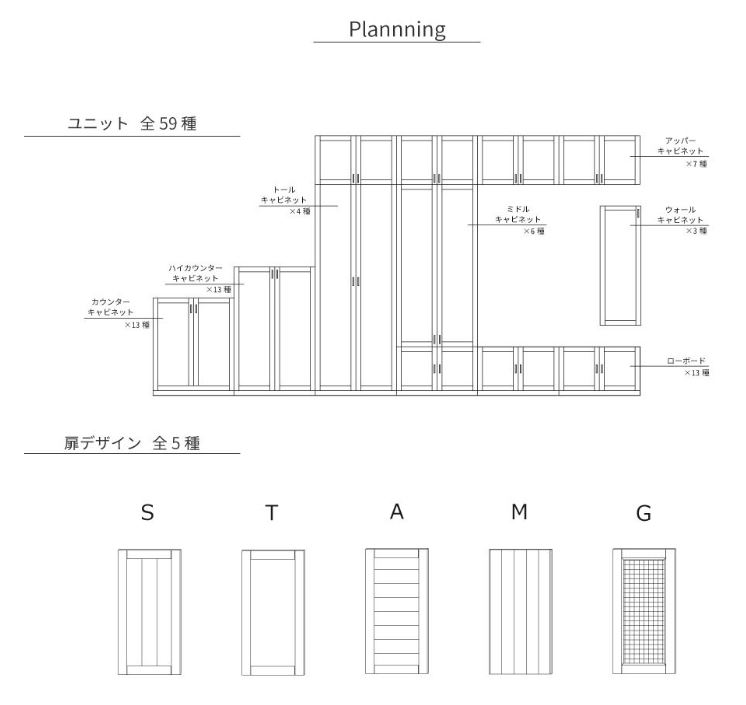 組み合わせ:カウンターキャビネット×アッパーキャビネット