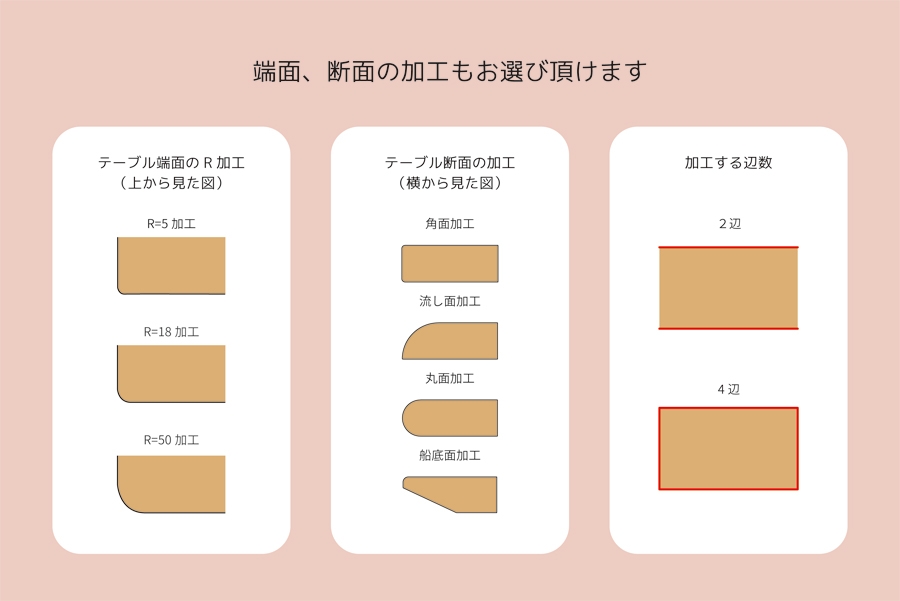 アッシュ・ミディアムブラウン塗装・角ストレート脚・船底面加工