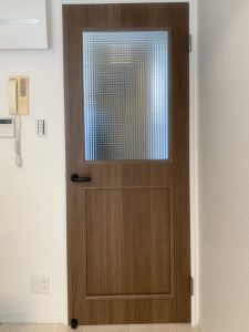 ▼リメイクされた建具(弊社オリジナルのチェッカーガラスをご採用)