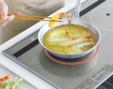 食材を入れて温度が下がっても素早く察知し加熱してくれるので揚げ物もサックサク♪