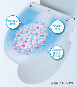 シャープの技術プラズマクラスターイオンを使用し、トイレ鉢内を除菌&気になるニオイを抑制してくれます。