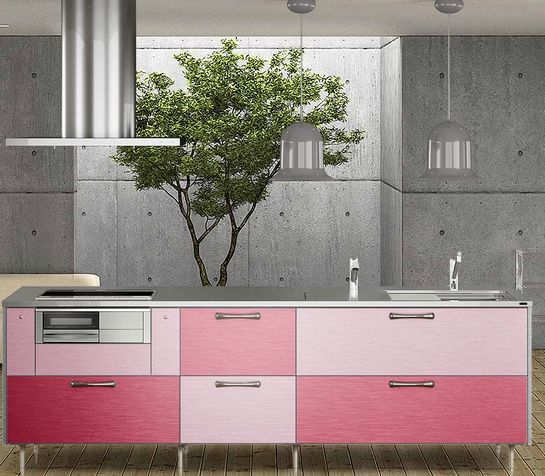 私はピンクが好きなので濃いピンクと薄いピンクを合わせて思いっきりラブリー(笑)なキッチンにしてみました☆