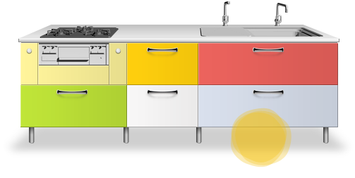 10色のカラーから好きなものを選べるのはもちろんレイアウト、サイズや水栓、加熱機器までも自由自在に組み合わせられるんですよ♪