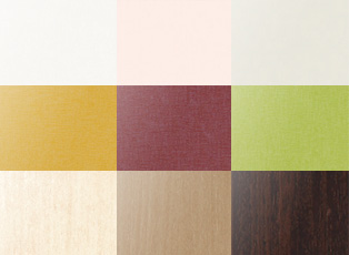 ■ツヤを抑えた「マット仕上げ」は、3色のカラーと4種の木目調。