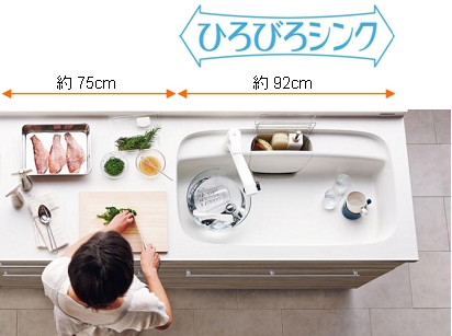 洗い物を残していても作業がしやすい「ひろびろシンク」など