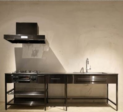 参創ハウテック エクレアパーツ事業部より発売されているブラックフレームキッチン。