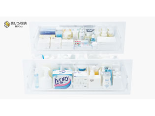 今までムダなスペースの原因となっていた排水管の配置や構造を見直すなど、TOTO独自の工夫によって、 広い収納スペースが生まれました。※標準装備しています。 10333-s2