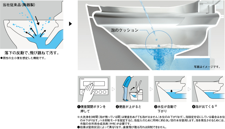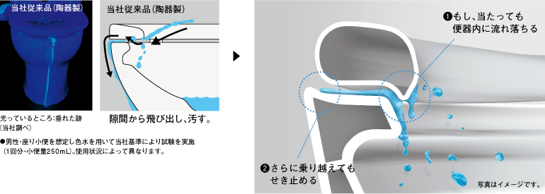 アラウーノは、「便座」と「便器」の巧みな合わせ技で漏れ出すのをおさえます!