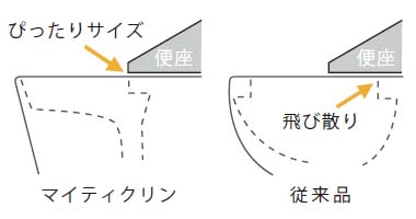 便座裏面への飛び散りを便器本体形状を便座形状に合わせることで、カバー。