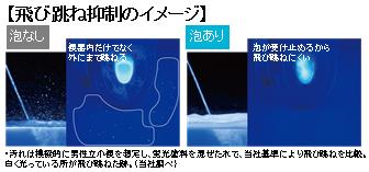 水面の泡のクッションで受け止めて、飛び跳ね汚れを抑えます。