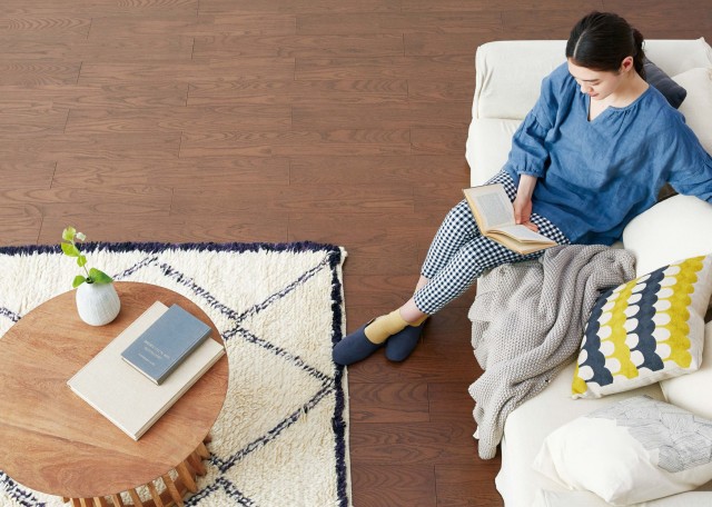 雑菌の繁殖も防ぎ、床暖房やホットカーペットにも対応する、とっても優秀なフローリングです。