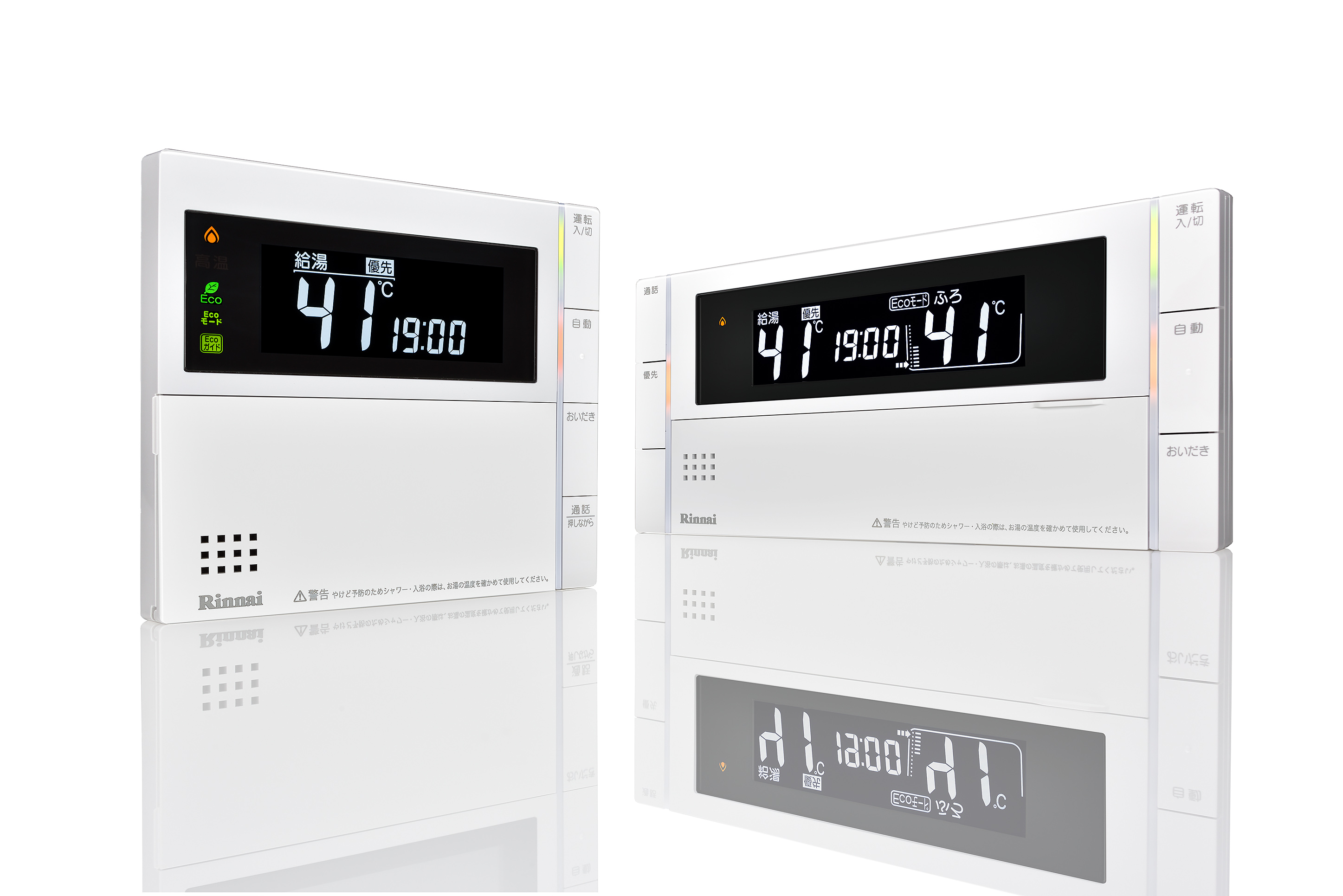必要最小限のスイッチだけを表に出したシンプルなスクエアデザイン。大きな液晶表示画面(キャラクター表示)を採用し、見やすく分かりやすくし、更に次に押すスイッチを光の点滅でお知らせ、又温度や湯量を音声でお知らせします。