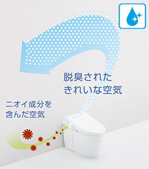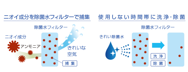 きれい除菌水を活用してアンモニアを自動でフィルターに捕集。イヤな臭いを脱臭してくれます!