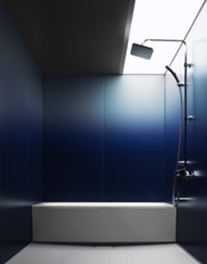 また、光を受ける面として浴室の壁を見直し、最も効果的な金属素材と印刷技術を組み合わせた