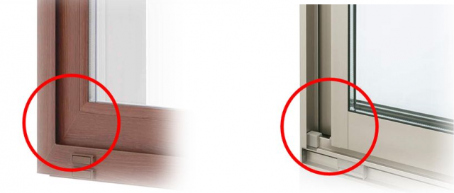 今回発表した「APW330」木目仕様(左)。樹脂形材を溶着した構造でコーナーの接合部の段差が小さくつなぎ目が自然。従来のアルミ系窓(右)と比べると一目瞭然わかります。