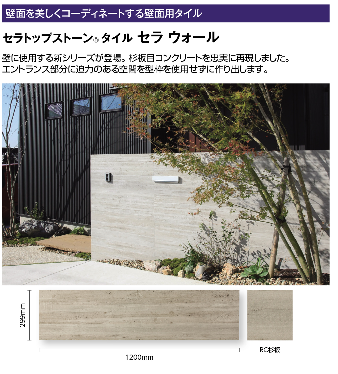 しかし、 今回タカショーが発売する『セラトップストーン(R)タイル セラウォール』は杉板目コンクリートを忠実に再現した壁貼り用タイルです!
