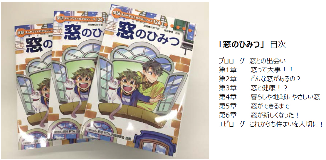 YKK APは、 窓への関心を高め、 住環境における窓の重要性についての啓蒙を目的として、 株式会社学研プラスの小学生向け学習教材“まんがでよくわかるシリーズ”『窓のひみつ』の発刊に協力をし、学研を通じて全国の公私立小学校(特別支援学校含む)と公立図書館に、 合計25,500冊を寄贈いたしました。