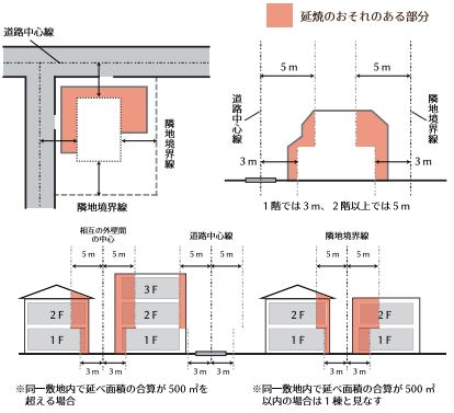 防火地域をとりまき、比較的防火上重要な地域が指定されます。