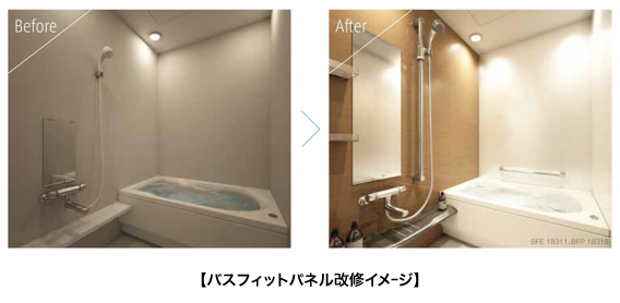 そんな背景の中、アイカ工業はカッターでも加工可能、軽量で搬入も容易な「バスフィットパネル」を発売しました。