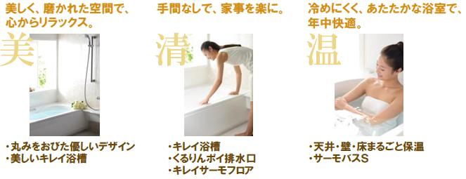 「リモア」は様々なデザインやカラーを選べるだけでなく、最新の優れた清掃機能や浴槽、