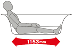 1600ロング浴槽は、底面長辺が1153mmと業界最大級※の広さを誇り、肩まわりも