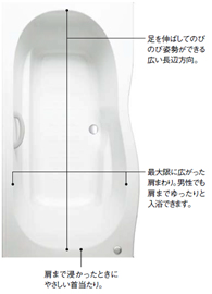 ワイドになっているため、男性でも足を伸ばしてゆったりとした入浴が楽しめます!