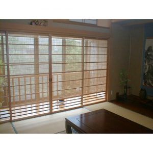 簾戸は、「夏障子」「御簾戸(みすど)」「葦戸(よしど)」 「葭障子(よししょうじ)」とも言われ、簾(すだれ)をはめこんた建具の総称です。 簾には、萩・葦・竹ヒゴなどの自然素材を使います。