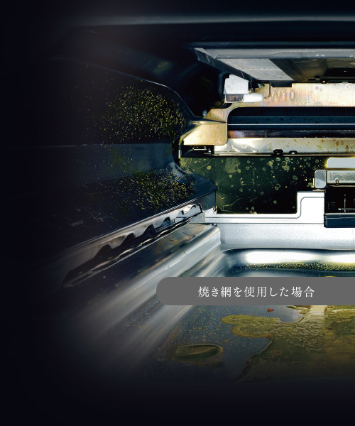 計算されたスリットによってグリル庫内に油を飛ばさずキレイな状態が長続き。