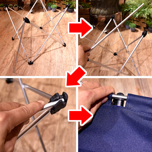 後はロール状になった天板を広げて、フレームの4箇所に天板フレームをセットするだけ!