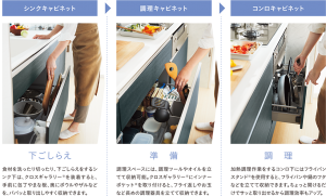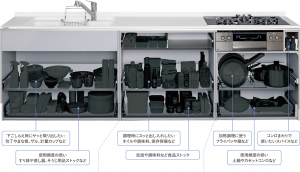 出し入れがしやすく調理の流れがスムーズに!「フットスペース収納」
