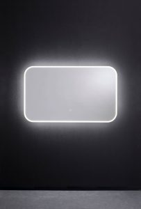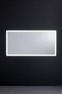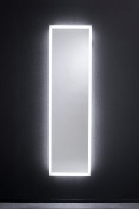 大きな鏡のふちがやさしく光るので、鏡に映る姿だけでなく、洗面所全体を明るく華やかに演出してくれる、スタイリッシュなミラーでした。