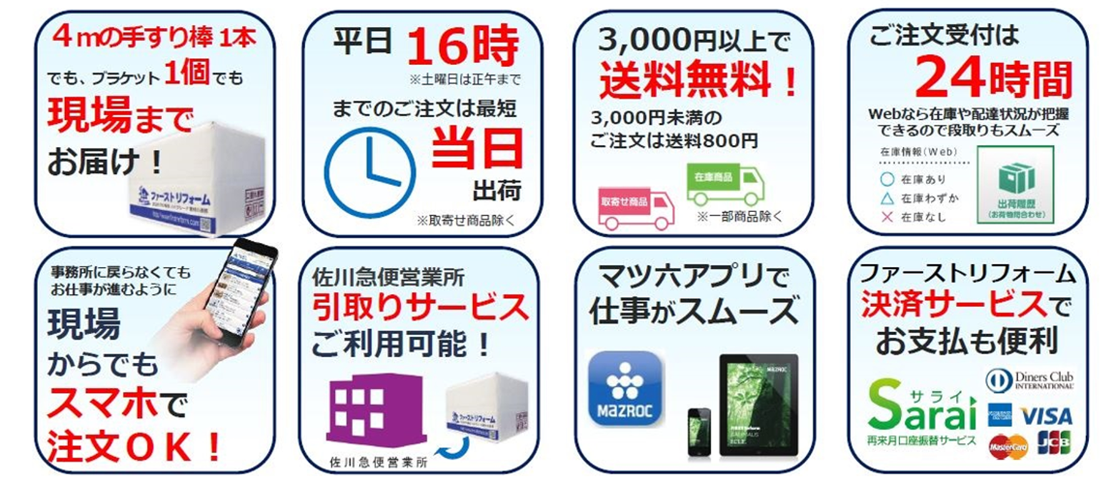 建築会社、リフォーム会社、不動産会社、特に原状回復や小規模リフォームの資材調達に力を発揮します!