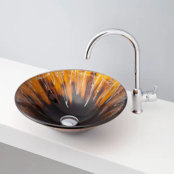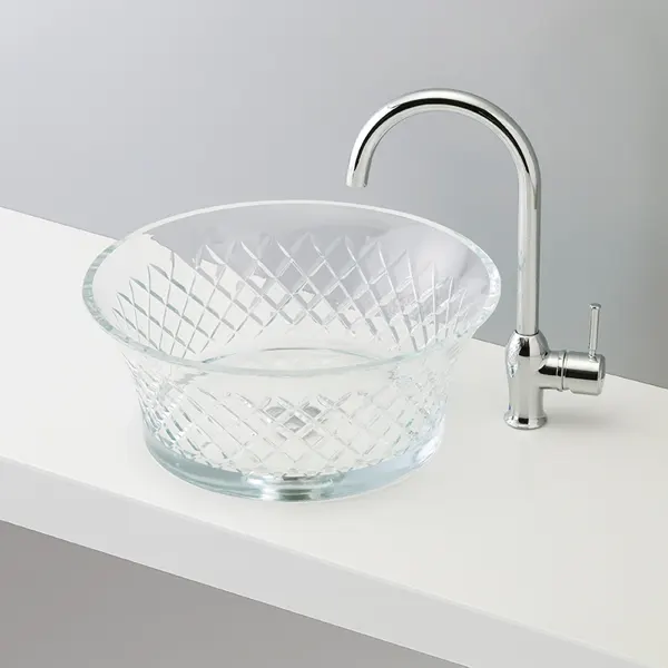 涼しげな模様が入ったガラスの洗面ボウル。