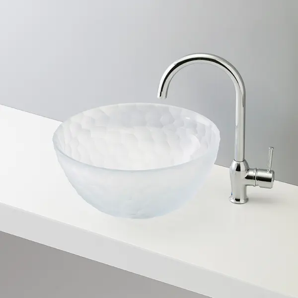 吹きガラス製法で1つ1つ手作業で制作するため、世界に一つしかない洗面ボウルに!