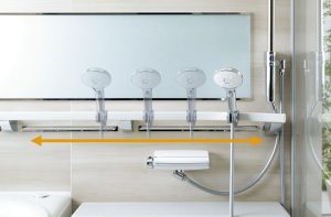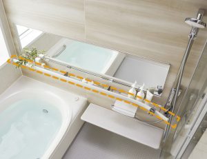 洗い場からバスタブへの動作をサポートして、収納もたっぷりのスマートエスコートバーを搭載。