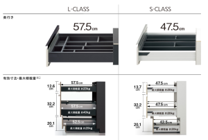L-classに比べ、奥行きが浅くスムーズな出し入れ