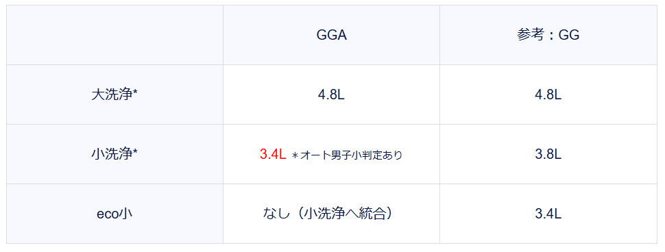 新登場の「GGA」シリーズでは、現行GGよりさらに洗練されたデザイン、使いやすさ、そして節水・節電性能の向上が実現されています。