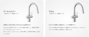 水栓はミネラル in ウォーターを常温と冷水で吐水できる冷水タイプと、常温で吐水する常温タイプ