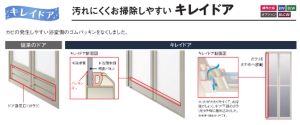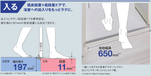 また、浴室ドアにはほこりが溜まりやすいドア換気口(ガラリ)をタテ枠へ移動。