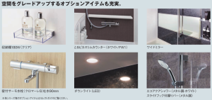 収納スペースや水栓、シャワーなど、ライフスタイルに合わせて選べる豊富なオプションをご用意。
