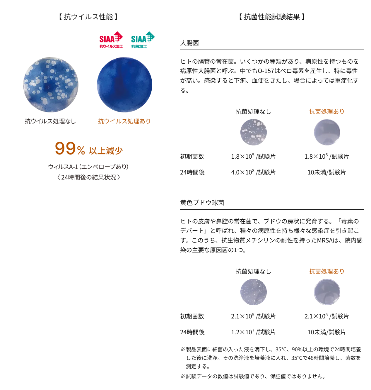 ▼抗ウイルス、抗菌性能でSIAA基準に適合