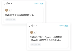 毎日の便の状態や傾向、その状態に合わせたリコメンドなどを表示!