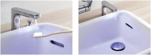 薬品を使わずに、水栓の吐水口や排水口のきれいを保つことができるので、お掃除の手間がぐんと減ります。