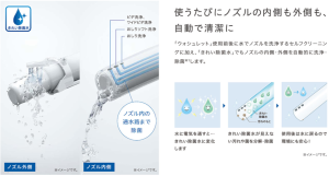 「ウォッシュレット」仕様前後に水でノズルを洗浄してくれる「セルフクリーニング」