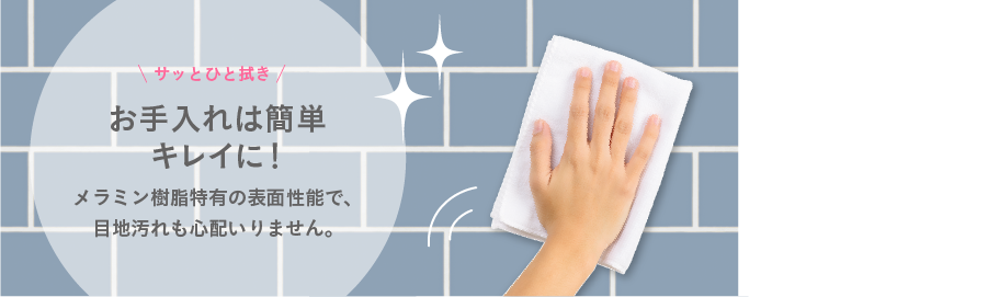 サッとひと拭きで、コンロ周りの油跳ねも、洗面台の水跳ねもリセットできます。